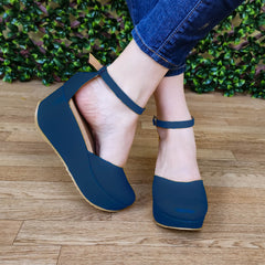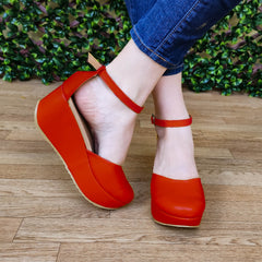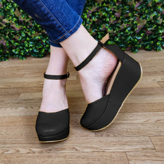 Plataforma mediana cerrada de enfrente, hecha de cuerina, diseñada con gargantilla
