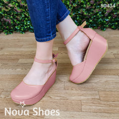 Plataforma Mediana Cerrada De Enfrente Hecha Cuerina Diseñada Con Gargantilla Rosado / 34 Normal