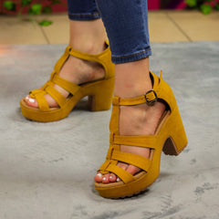 Sandalias de Tacón Grueso en Gamuza. Toque Suave para una Silueta Definida