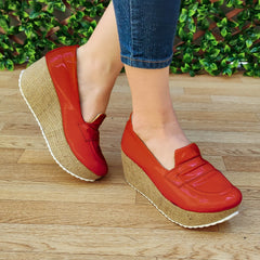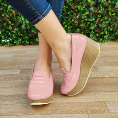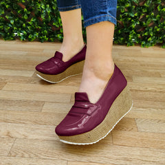 Plataforma Brillante De Charol Con Suela Forrada En Bramante Beige / 34 Normal Zapatos Medianos