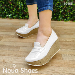 Plataforma Brillante De Charol Con Suela Forrada En Bramante Blanco / 34 Normal Zapatos Medianos