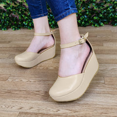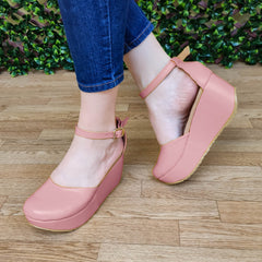 Plataforma mediana cerrada de enfrente, hecha de cuerina, diseñada con gargantilla
