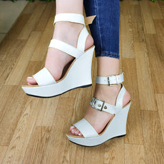 Hermosa sandalia de plataforma. Está diseñada con 3 fajas siendo la de en medio y la de atras ajustable mediante hebillas