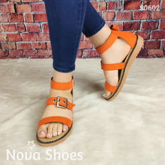 Bella Sandalia Bajita Con 3 Fajas Dos De Ellas Ajustables. Hechas Gamuza Anaranjado / 35 Normal