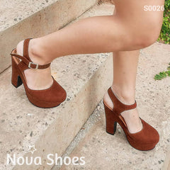 Zapato Cerrado De Enfrente Descubierto En La Parte Atras Cafe / 35 Normal Zapatos Altos