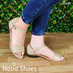 Sandalia Abierta Construida Con Un Taconcito Pequeño Beige / 35 Normal Zapatos Bajitos