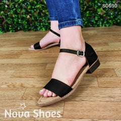 Sandalia Abierta Construida Con Un Taconcito Pequeño Negro / 35 Normal Zapatos Bajitos