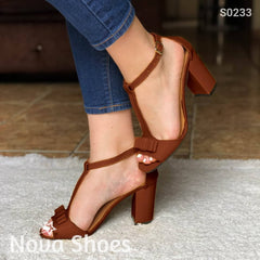 Sandalia de tacon cuadrado, unida con una faja en medio