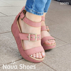 Sandalias medianas, hechas de gamuza, con tres fajas